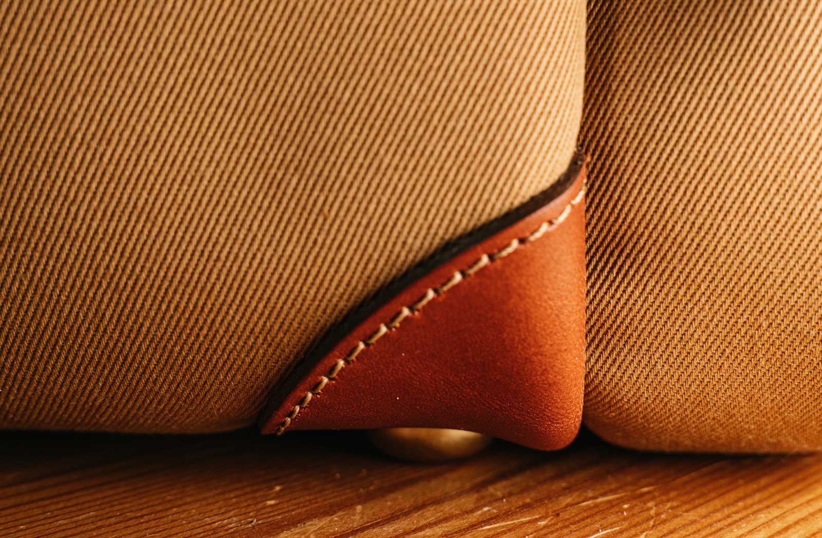 Die 5er hat wie auch die 7er Reihe 4 Messingfüße. Bei einer Tasche dieser Größe ist das in meinen Augen einfach Pflicht. Wie ich oben schreibe, werde ich aus der Tasche heraus wohl nur arbeiten, wenn diese am Boden steht. Die Messingfüße sind dabei in lederverstärkte Ecken eingearbeitet, und Billingham schreibt selber
