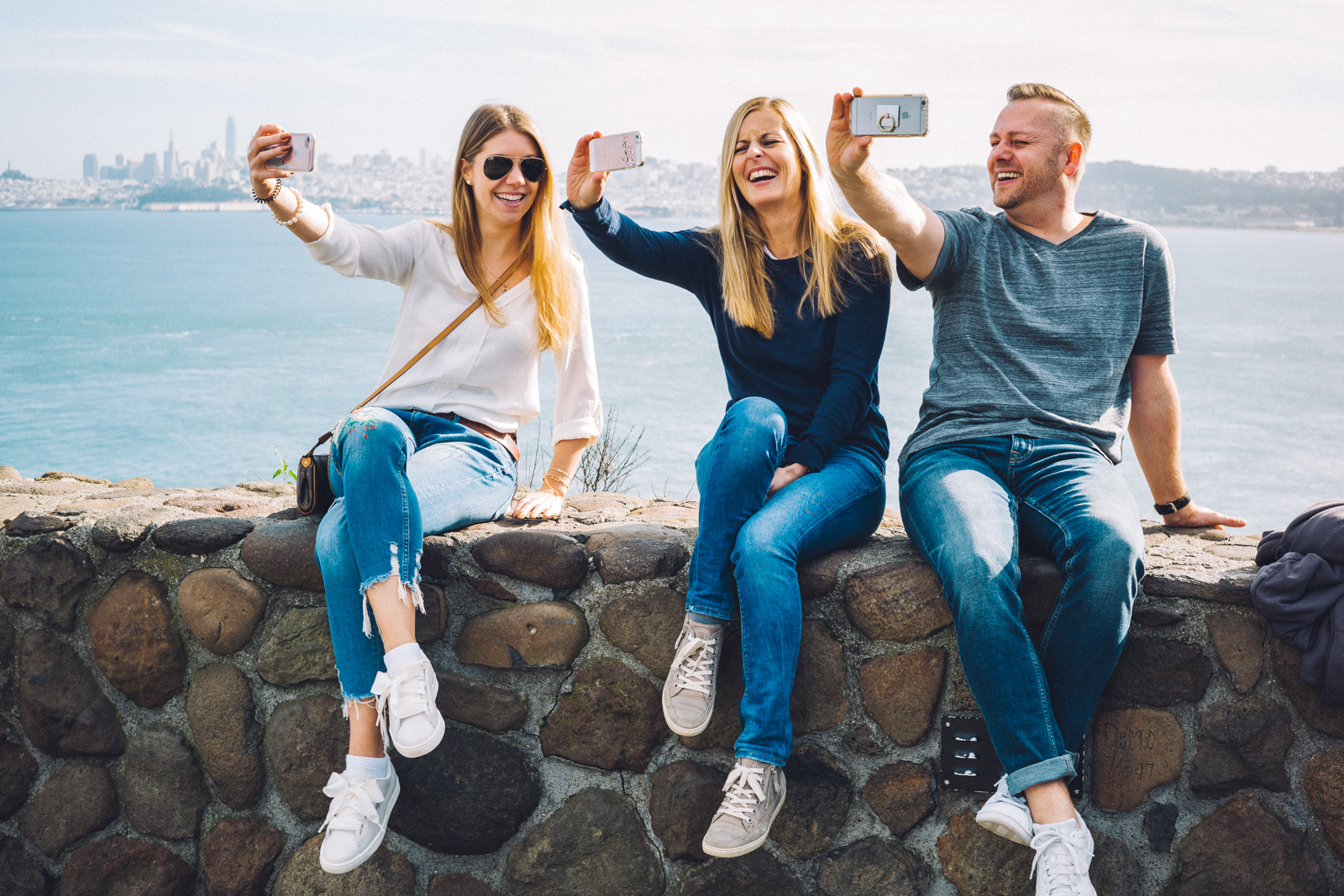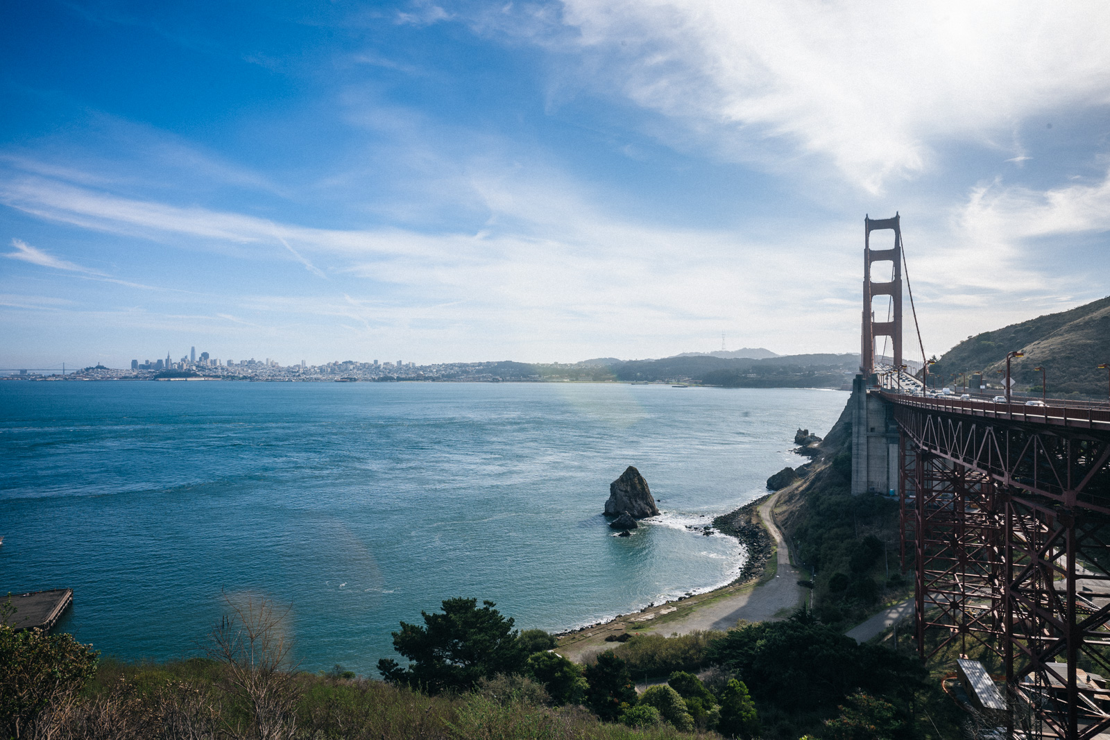 Das Wetter war traumhaft an diesem Tag, immerhin war es Ende November und ich konnte mich nicht zwischen nur T-Shirt und dünner Jacke entscheiden. Die Laune war nicht zuletzt deshalb super in unserer kleinen Reisegruppe. Von den Twin Peaks konnte man die Golden Gate Brücke sehr schön sehen, was auch nicht immer der Fall ist. Nach ein paar Fotos und Genießen der Aussicht war die Golden Gate Bridge dann auch unser nächster Anlaufpunkt. Auch wenn es ein Touri Hotspot ist, ich liebe diese Brücke. Vielleicht ist das der Bauingenieur in mir? Ich weiß es nicht, ich werde jedenfalls nie müde sie zu sehen.