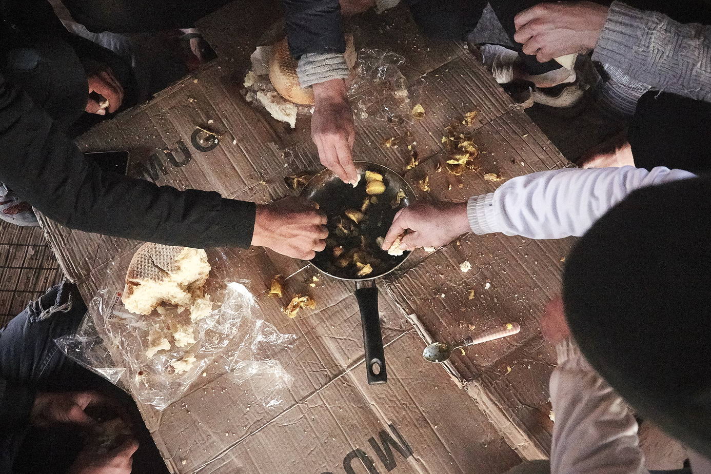 „In Syrien vor fünf Jahren ist eine Bombe neben mir gelandet und ich wurde danach in die Türkei für die medizinische Behandlung transportiert. […] Mein Vater und meine Mutter sind dadurch gestorben [und] ich lag acht Monate im Koma. […] Meine Frau [und Kinder] sind noch in Syrien. […] Ich hatte kein Geld, um sie mitzunehmen. Ich schlafe hier auf der Straße neben dem Bahnhof,