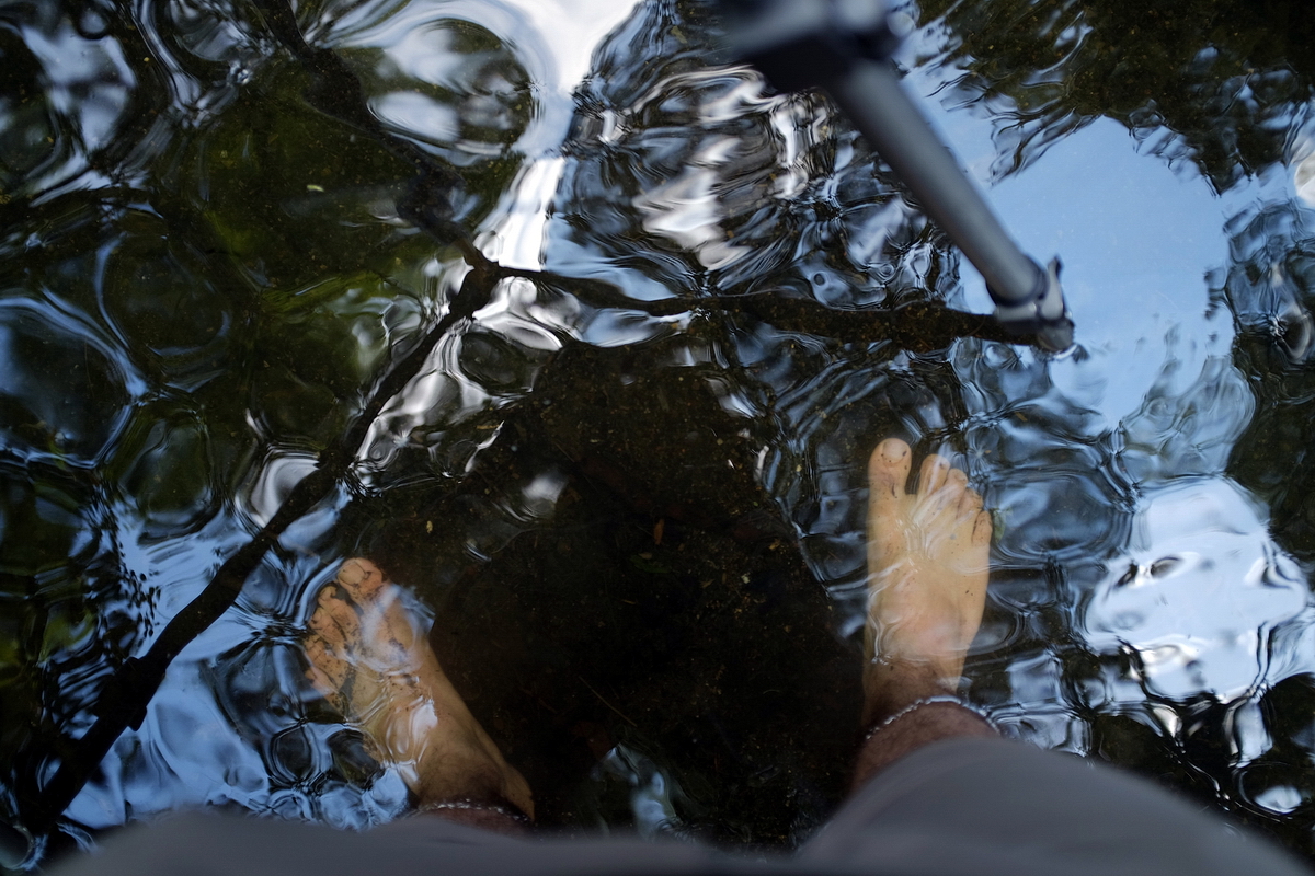 Here I used it’s in-built ND-filter to capture some flowing water in bright daylight. While standing there in the middle of a small but very cold stream a hiker came by and took a photo of me. The guy sent it to me, so I just include it here (Thanks, Markus!).