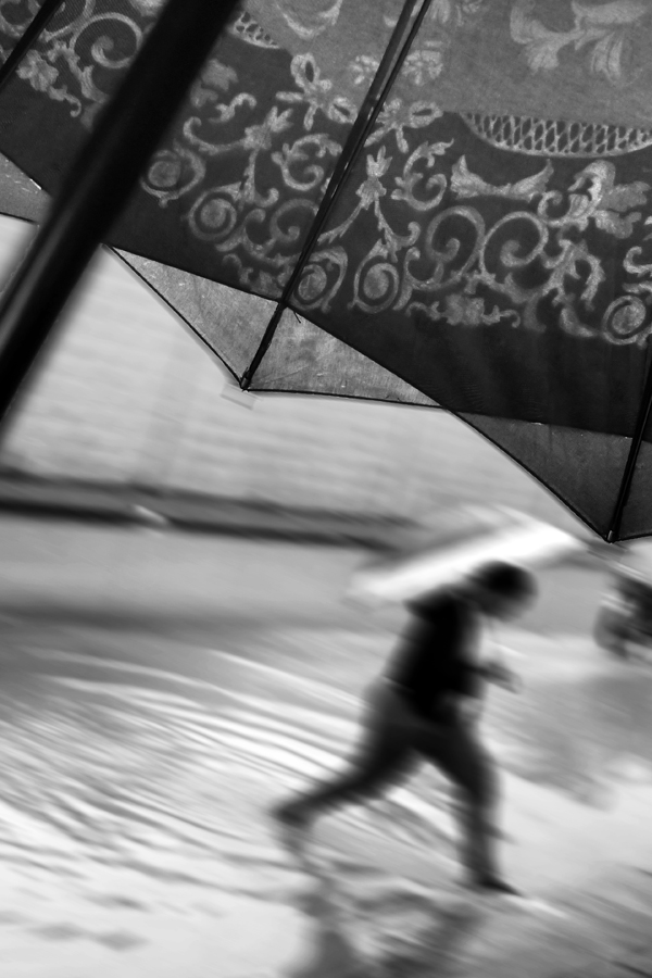 Als ich ein Kind war, sahen wir im Fernsehen eine “Lassie”-Folge. Es war Hochsommer, brüllend heiß, und so hatten wir die Jalousie heruntergelassen, da die Sonne genau auf das Wohnzimmerfenster schien. In der “Lassie”-Folge regnete es furchtbar in der Nacht. Plötzlich klingelte es bei uns. “Wer kommt den mitten in der Nacht bei diesem Regen?” wunderte ich mich. So sehr war ich gefangen in der Fernsehfolge, dass ich dachte, ich befände mich in dieser regnerischen Nacht, dabei war draußen 30 Grad und Sonnenschein. Idealerweise sollte das mit Streetfotos auch so sein, dass sie den Betrachter die Gluthitze oder die Kälte der Nacht oder die stinkenden Abgase und auch den Lärm, die Hektik, den Stress spüren lassen.
