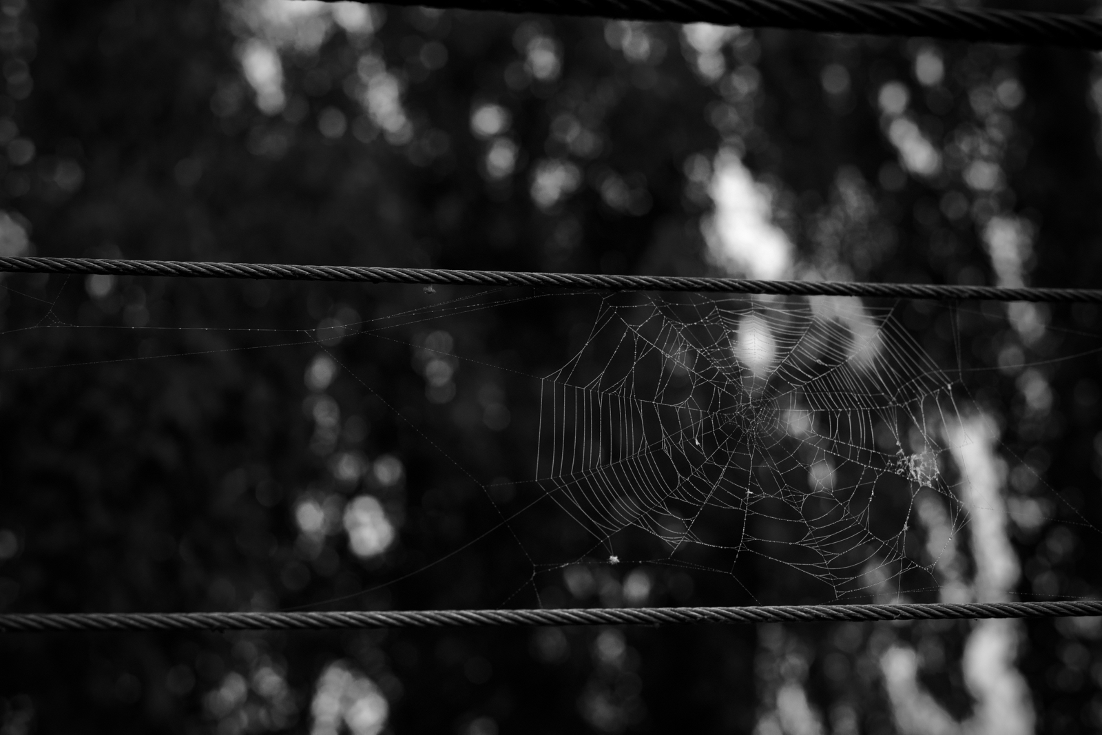 Bei leichtem Nebel, mag ich besonders die Tiefenwirkung, welche bei Sonnenaufgang entsteht. Weiter entfernte Objekte werden heller und verschwimmen ein wenig. Die komplette Szene wirkt dann ein wenig surreal. Diesen Effekt habe bei der Baumreihe noch etwas verstärkt, in dem ich die Blende komplett geöffnet habe. Kondenswasser, welches sich morgens bei Spinnennetzen besonders absetzt sind der Klassiker. Das 50’er Loxia, welches ich neu habe, wollte ich unbedingt auf Bokeh testen.