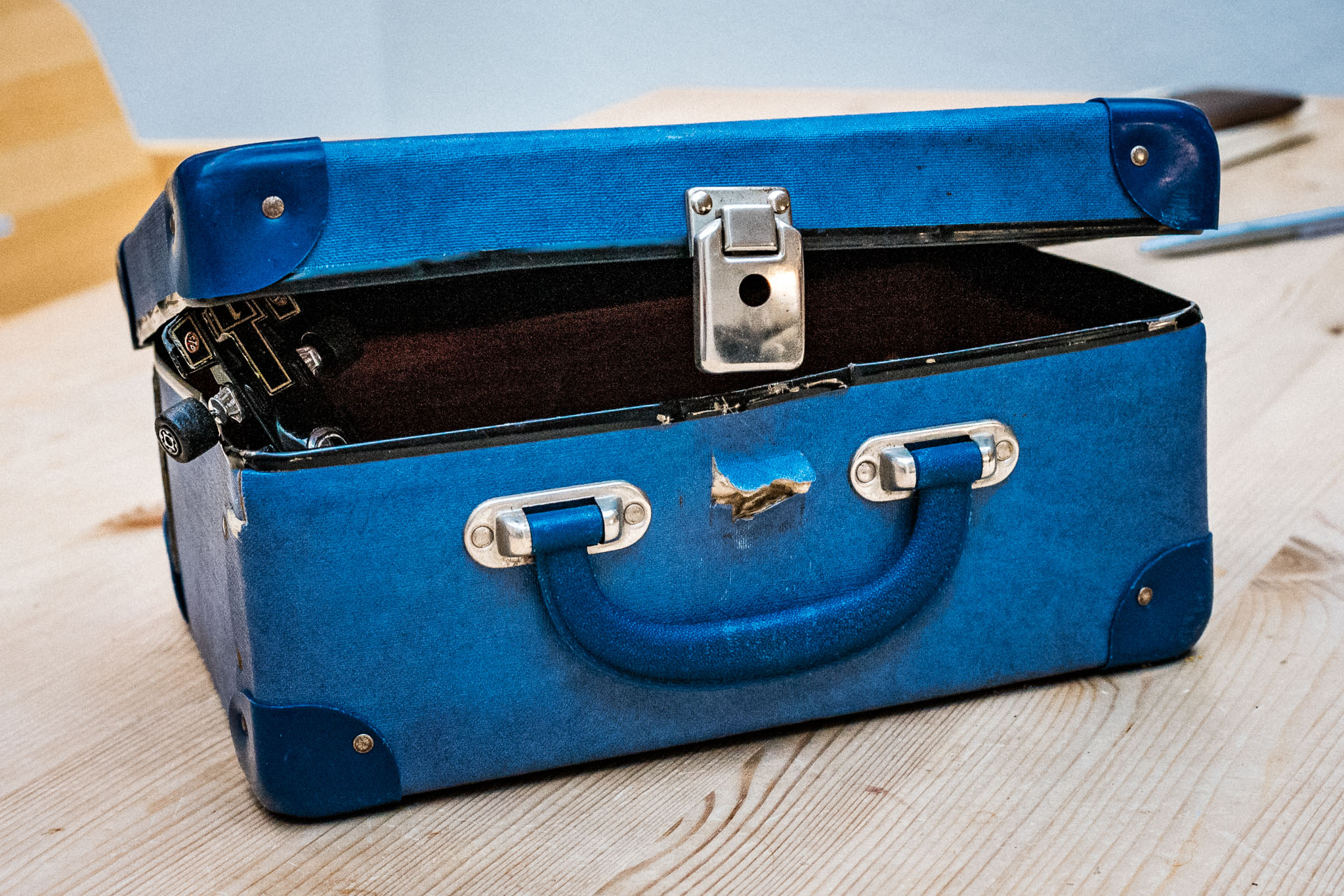 Ich war kürzlich mal wieder bei meinen Eltern. Nichts besonderes bei mir, denn ich habe glücklicherweise ein sehr gutes Verhältnis zu meinen Eltern. Wir leben in der gleichen Stadt, von Computern habe ich mehr Ahnung als mein Ingenieur-Papa, persisches Essen ist einfach eine geniale Küche und Mama kann einfach immer noch am besten kochen. Es gibt also viele Gründe, gerne und oft meine Eltern zu besuchen. Dieses Mal hatte mein Vater gerade seinen Keller entrümpelt und er überraschte mich mit ein paar meiner alten Spielzeuge aus der Kindheit. Ich weiß natürlich nicht, wie das bei Euch ist, ob Ihr bzw. Eure Eltern Euer altes Spielzeug einfach weggeben haben. Aber als ich da so im Wohnzimmer stand, wurde mein Blick wie ein Magnet auf den kleinen unscheinbaren blauen Koffer gelenkt. Okay, meine Mutter ist eine sehr ordentliche und reinliche Person, alles muss immer genau an seinem Platz stehen. Was habe ich da manchmal als Kind drunter gelitten. 😉 Vielleicht fiel er mir auch deshalb sofort auf?