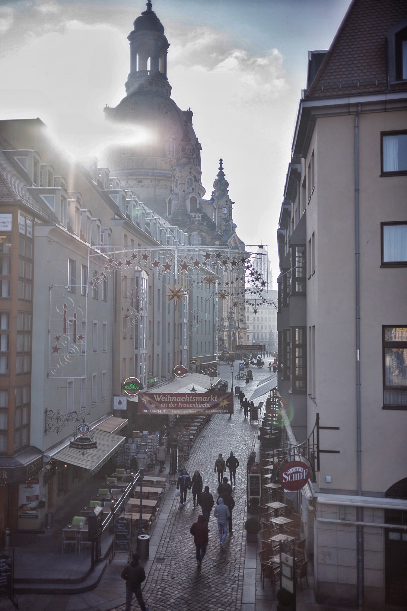 Sonntags in der früh nach der abendlichen grossen Feier haben wir uns dem Familientrubel dann mal entzogen und sind ganz zeitig mit der guten alten Strassenbahn in die Altstadt gefahren und sind dort durch die Gassen gelaufen und haben das Erwachen der Stadt genossen. Die Morgensonne und ein heisser Kaffee in der Hand machte die eisigen Temperaturen und den Wind erträglich und eine ganze Weile hatten wir Dresden gefühlt für uns.