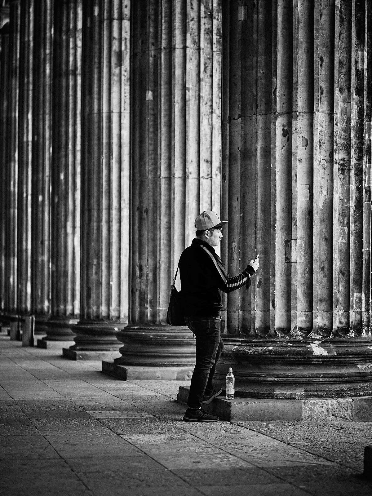 Offenbar wurde es hinsichtlich der optischen Leistung konstruiert und nicht auf klein getrimmt. Ich kann allerdings sagen, dass es an der SL (und auch einer Panasonic S1R bspw) sehr gut ausbalanciert ist. Der Balancepunkt liegt so ziemlich genau einen kleinen Fingerbreit vor dem Bajonett. Damit hat man im Handling über lange Zeit noch viel Kraftreserven, da es um einen guten Punkt herum rotiert sozusagen. Es ist geradeso noch nicht so groß, dass es Menschen abschreckt, die man fotografieren möchte. (Eines der Argumente, die in den elenden Diskussionen über mirrorless vs DSLR immer wieder kommen.) Ich habe zumeist den Balancepunkt des Systems auf den Zeigefinger der linken Hand abgelegt, was die Komposition und das Warten auf den rechten Moment sehr einfach gestaltete.