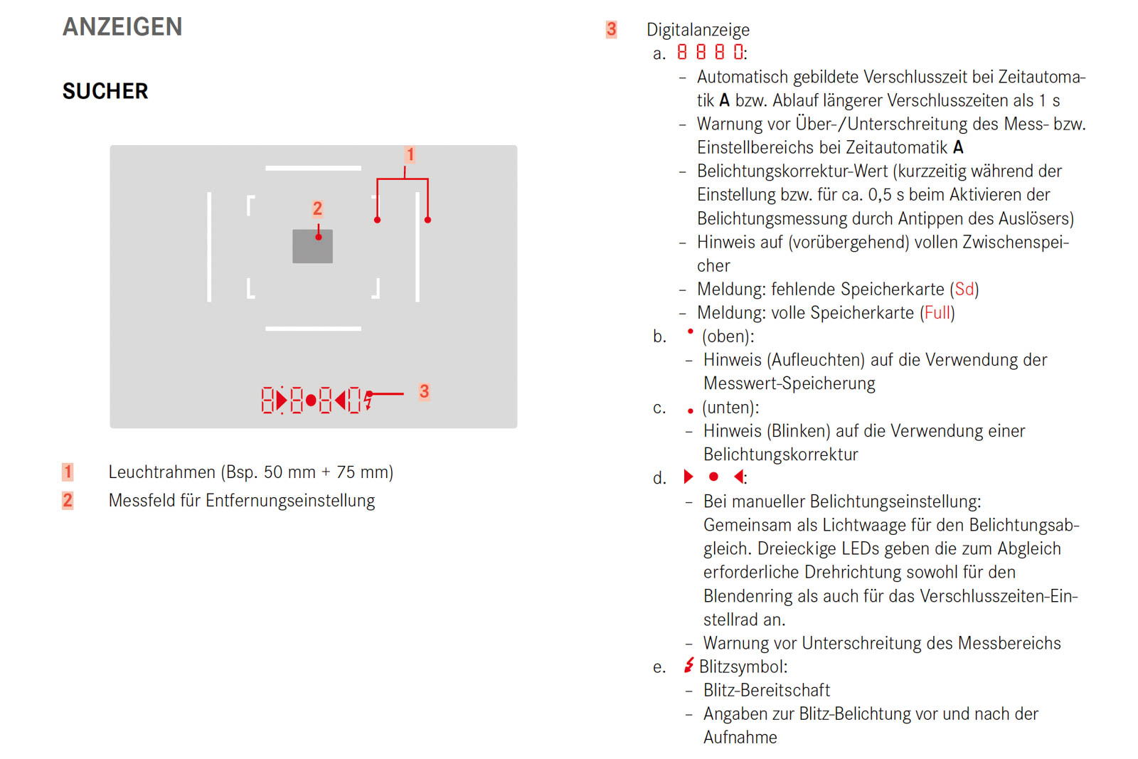 Seit der Leica M(Typ240) haben die Leicas Liveview, welches die Benutzung von digitalen Aufstecksuchern erlaubt. Bei den Ms sind Aufstecksucher kein modernes Teufelszeug. Im Gegenteil, eher ein sehr alt bewährtes Mittel, um vor allem mit Weitwinkelobjektiven an der M zu arbeiten. Schon auf den alten Ms wurde das von vielen genutzt. Mit dem digitalen Sucher, dem Visoflex (Typ 020) , wird einem im Prinzip das Display gespiegelt im Sucher dargestellt. Für die M (Typ240) gibt es auch einen elektronischen Aufstecksucher, den Visoflex EVF2.