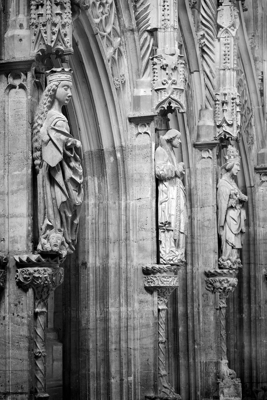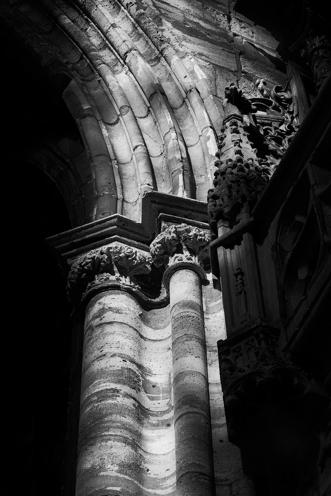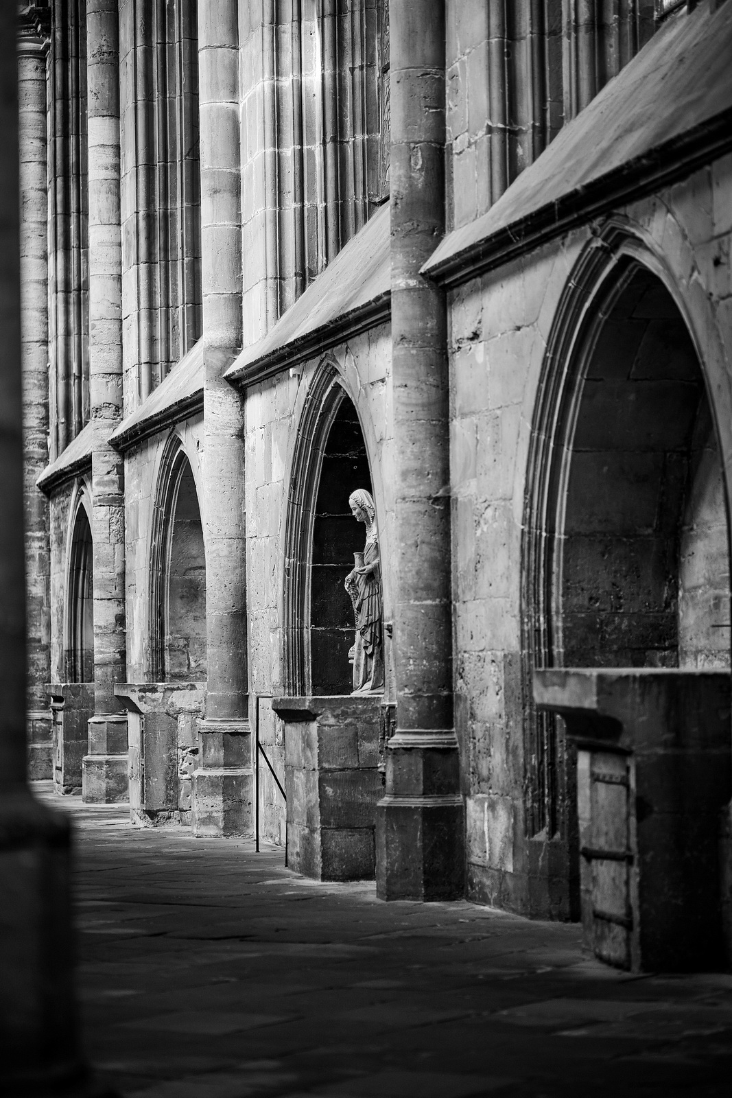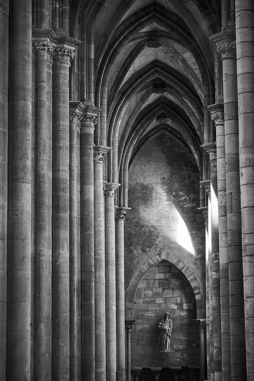 Ist erstmal das Stativ eingerichtet, wird die Belichtung festgelegt- ganz in Ruhe kann man abwägen, welche Tiefe die Schärfe haben muss und wie lange ich dafür belichten muss. Ist das geklärt, kann es ja fast losgehen. Fokuspunkt, Komposition und Belichtung stimmen nun und ich kann auslösen. Die Kamera sucht plötzlich im Halbdunkel der alten Kirche nach dem Fokus. Anderthalb Sekunden Geratter und letztlich hört man den Verschluss. Es belichtet volle dreißig Sekunden und danach, endlich, kann man sich das Ergebnis anschauen. Mist! Unscharf. Alles nochmal. Auslösen, rattern, warten. Muss ja nicht sein.