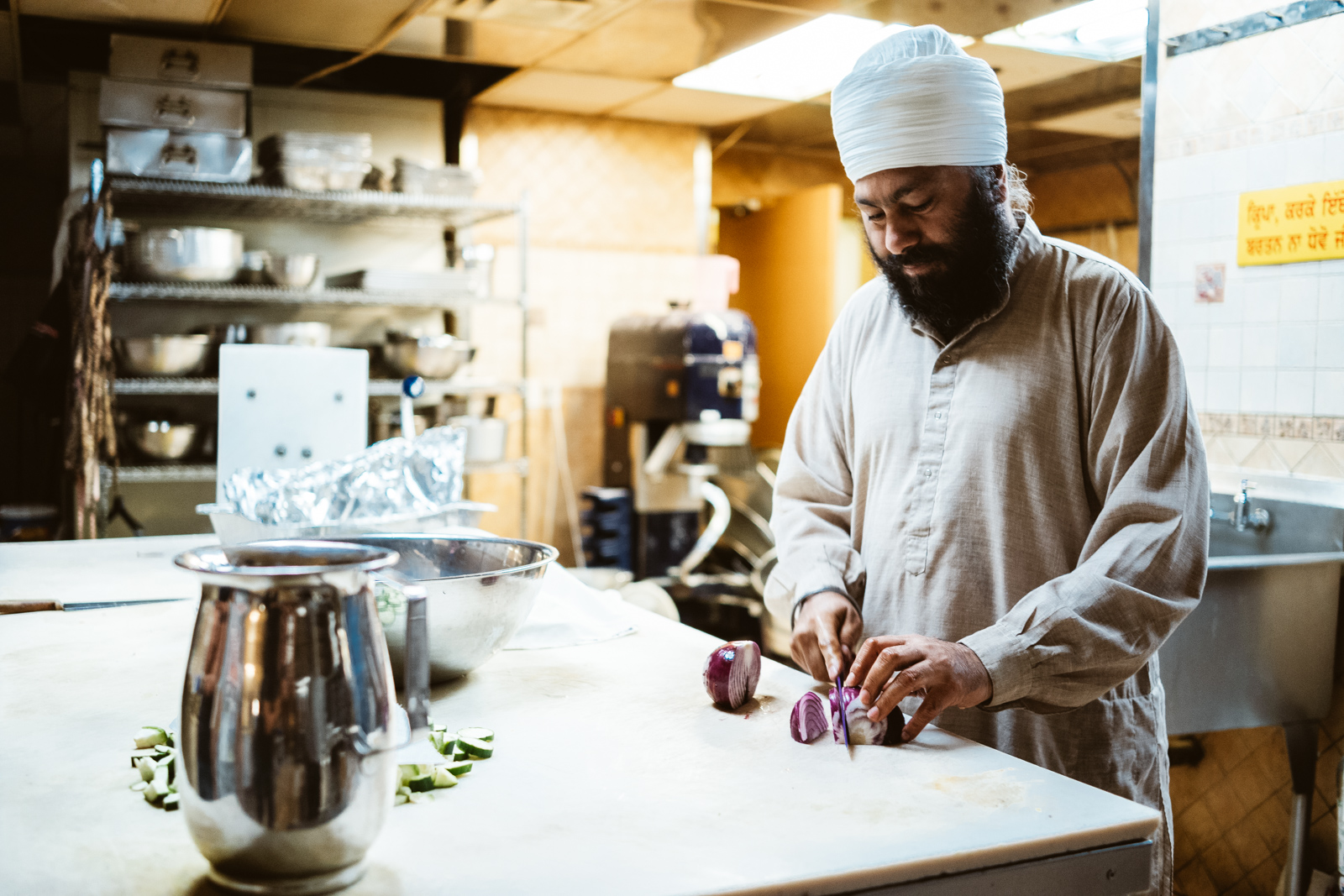 Nun denn, jedenfalls wurde ich ziemlich neugierig als mein Kollege erzählte, er wolle in Montreal in einen großen Sikh Tempel. Ich freute mich, dass ich nun endlich mehr Einblicke bekomme, etwas vollkommen unerwartet anderes ausgerechnet in Montreal in den knappen 24 Stunden vor Ort erleben werde und natürlich so mal das 35mm Summarit etwas fordern kann. Allerspätestens hatte er mich aber, als er mir sagte, dass man in jedem Sikh Tempel Essen umsonst bekommt. 😉