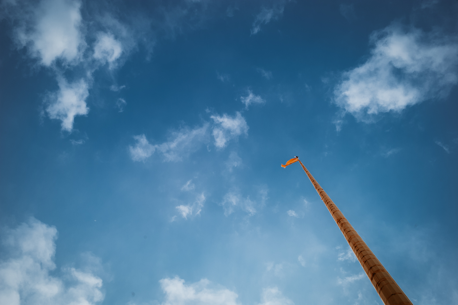 Der Tempel war vom weiten schon gut erkennbar und dank der sehr langen Fanhnenstange mit der Fahne der Sikh auch schon der erste Punkt, der meine Neugier weckte. Ich erfuhr, dass diese Fahne eben dafür steht, dass man von möglichst weit her den Tempel der Sikhs erkennt. So wissen andere Sikhs, wohin sie müssen um eben einen Tempel zu finden. Ich hatte mir das erst wie mit dem Kreuz auf Kirchtürmen erklärt, und tatsächlich ist diese Fahne vielmehr als Orientierungshilfe zu sehen. Also weniger ein: „Hier herrsche ich“, als vielmehr ein „Hier sind wir“.