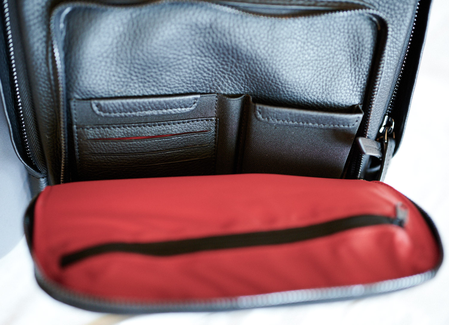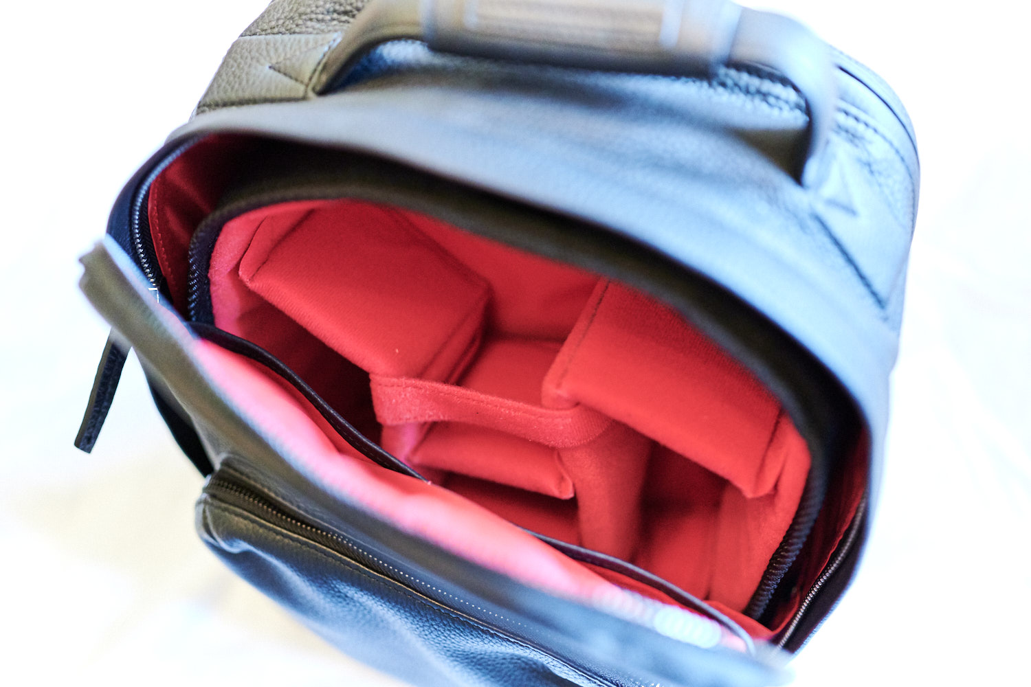 Was vielleicht ganz angenehm ist: Der Rucksack sieht nicht nach Fototasche aus. Von weitem ist es eben ein kleiner schwarzer Lederrucksack. Die Qualität offenbart sich hauptsächlich in der Verarbeitung und Haptik – bis dahin ist er unpretentiös, was ich positiv aufnehme.