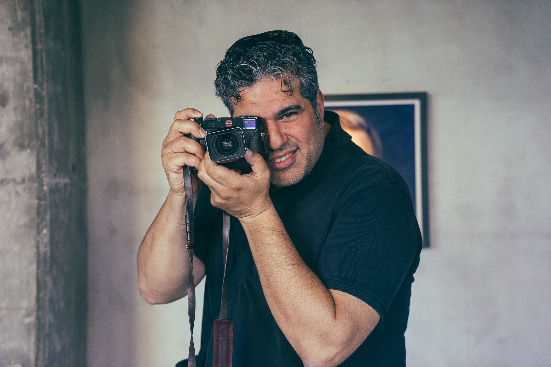 Dass seine Entertainfähigkeiten auch sehr stark ausgeprägt, sind macht die ganze Führung noch einmal zu einem ganz speziellen Erlebnis. Für die Fotografiebegeisterten plaudert er auch ein wenig aus seiner Trickkiste und zeigte natürlich auch sein Equipment, das er an jenem Abend nutzte: Zwei Leicas mit jeweils einem Objektiv! Ein 35mm und das Summilux 24mm, that’s it! Tatsächlich brauchte er nicht mehr für diese grandiose Fotoreportage. Die Leica mit dem Summilux ließ er auch durch die Reihen gehen. Ja, ich gebe zu, ich dachte eine Millisekunde….“Mmmmmh, was wäre, wenn ich…..?“ Aber ich begnügte mich mit einem Poserfoto. Ja, die Sonnenblende ist schief drauf, allerdings ist die so lose wie sonst was…. keine Ahnung, wie er damit arbeiten kann. 😉