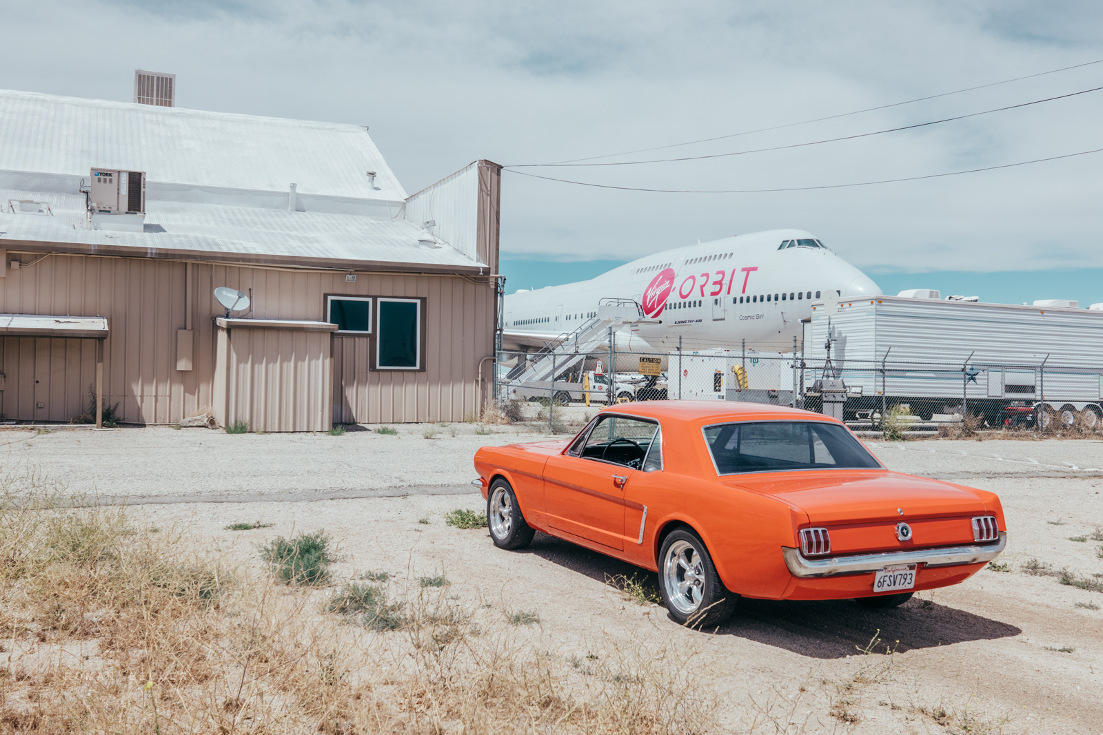 Als kleine Zugabe stand ein roter Ford Mustang direkt in der Nähe und ich konnte eine Aufnahme von beiden zusammen machen. Die Security in Mojave war allerdings etwas nervöser als in Victorville, schließlich wird hier an aktuellen, möglicherweise richtungsweisenden Technologien gearbeitet. Ich wurde dann freundlich gebeten keine Bilder von dem Flieger zu machen und abzuhauen. Zum Glück hatte ich eh genug.