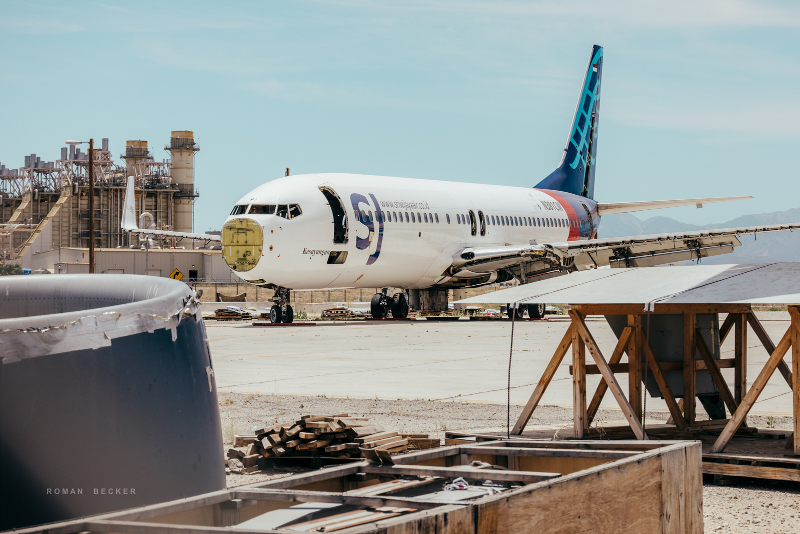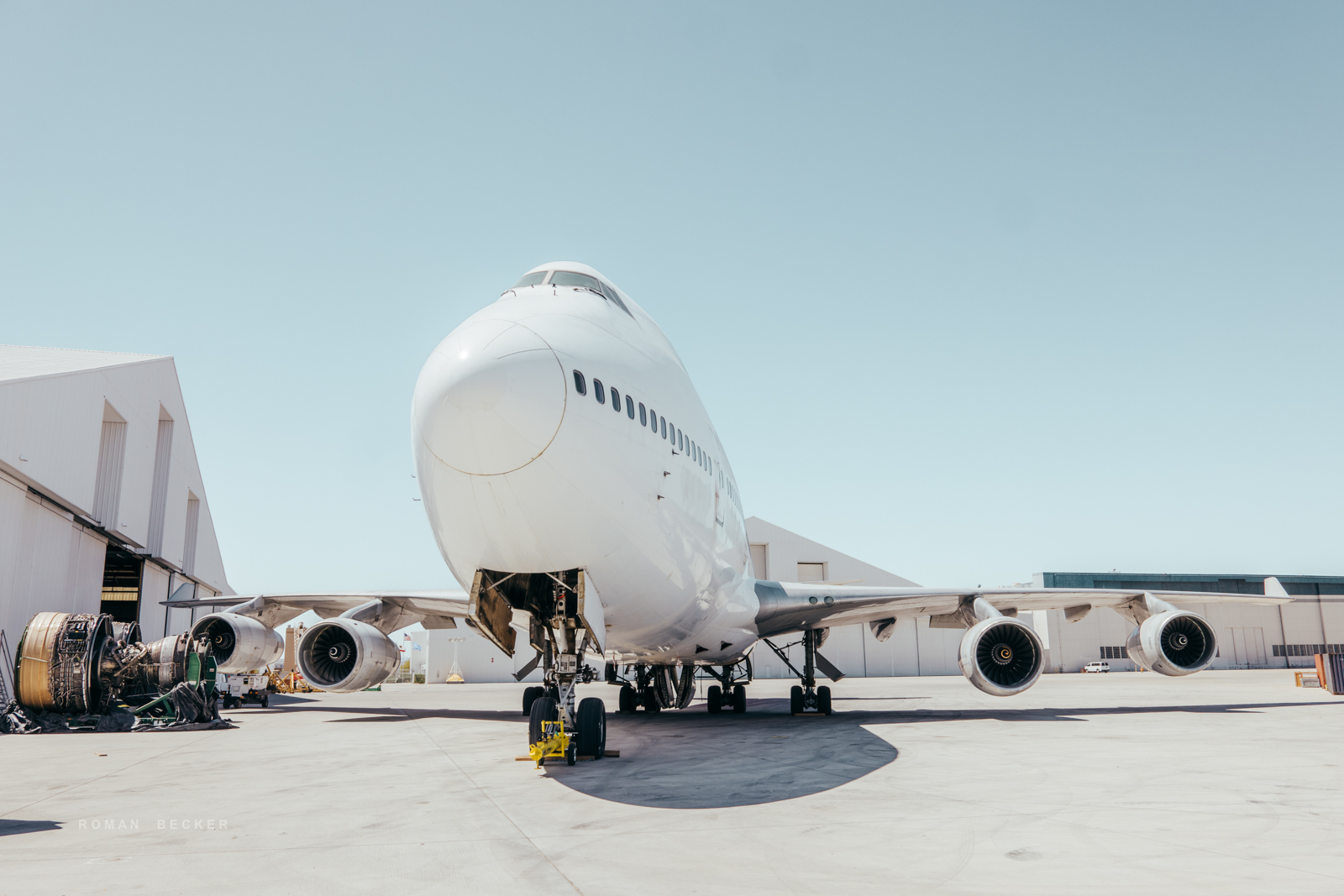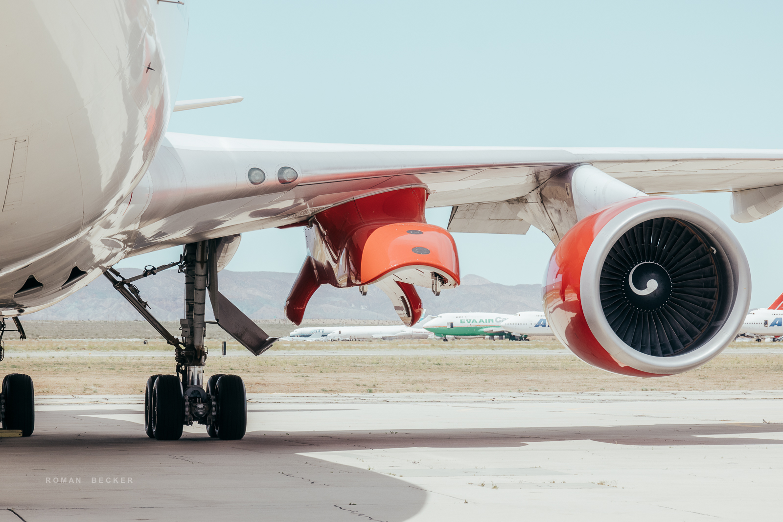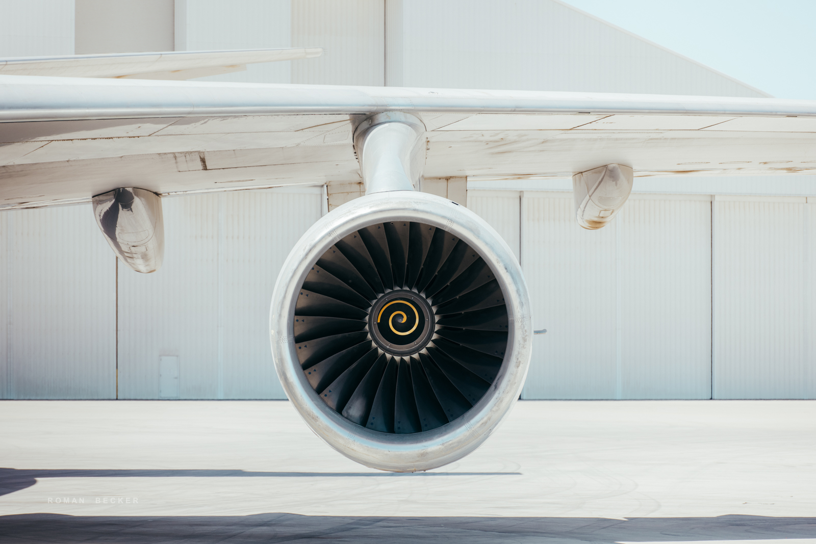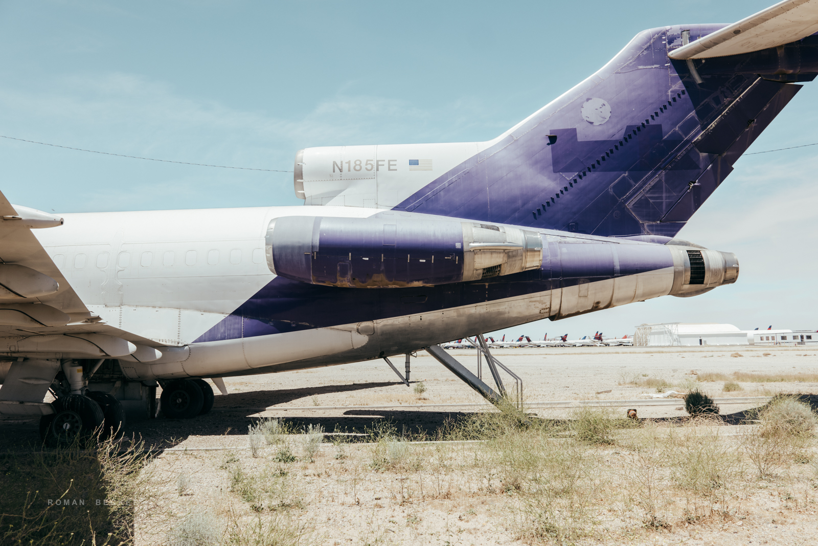 Aus diesem Grund befindet sich auch die Hauptabstellfläche für die Flieger zentral und sehr schwer einsehbar auf der Mitte des Flughafens. Selbst mit einem starken Tele hat man da wenig Erfolg, Hitzeflimmern macht die Aufnahmen unbrauchbar. In ein paar versteckten Winkel des Airports habe ich dann aber ein-zwei Oldtimer gefunden, die ich aus fotografischer Sicht ziemlich interessant fand. Um möglichst nah an die Jets zu kommen, musste ich den Wagen an der Straße parken und dann ein paar Schritte zu Fuß gehen. Dabei hat mich die Airport-Security manchmal etwas kritisch beäugt. Nachdem man allerdings festgestellt hatte, dass ich eine Kamera in der Hand habe (und keine Waffe), hat man mich gewähren lassen. Die Luft ist glasklar in der Wüste und die Temperatur lag bei ca. 30 Grad, der Himmel hatte eine tiefblaue Farbe. Die Sonnenbrille, die ich trug, hatte leicht gelbliches Glas. Jedes Mal, wenn ich durch die Brille schaute, tönten sich die Farben des Himmels in einen Türkisen-Ton. Ich fand, dass die Farbe irgendwie gut passte und habe mich später bei der Nachbearbeitung an dieser Farbgebung orientiert.