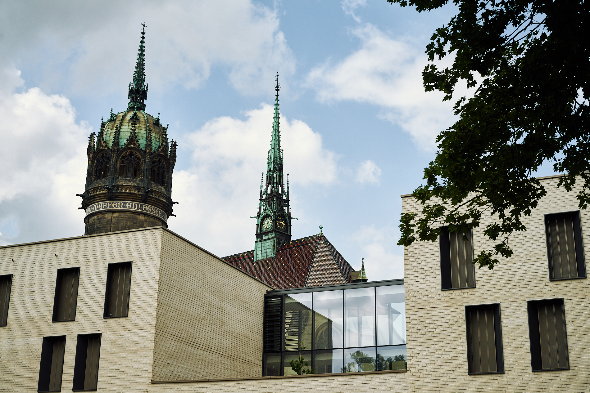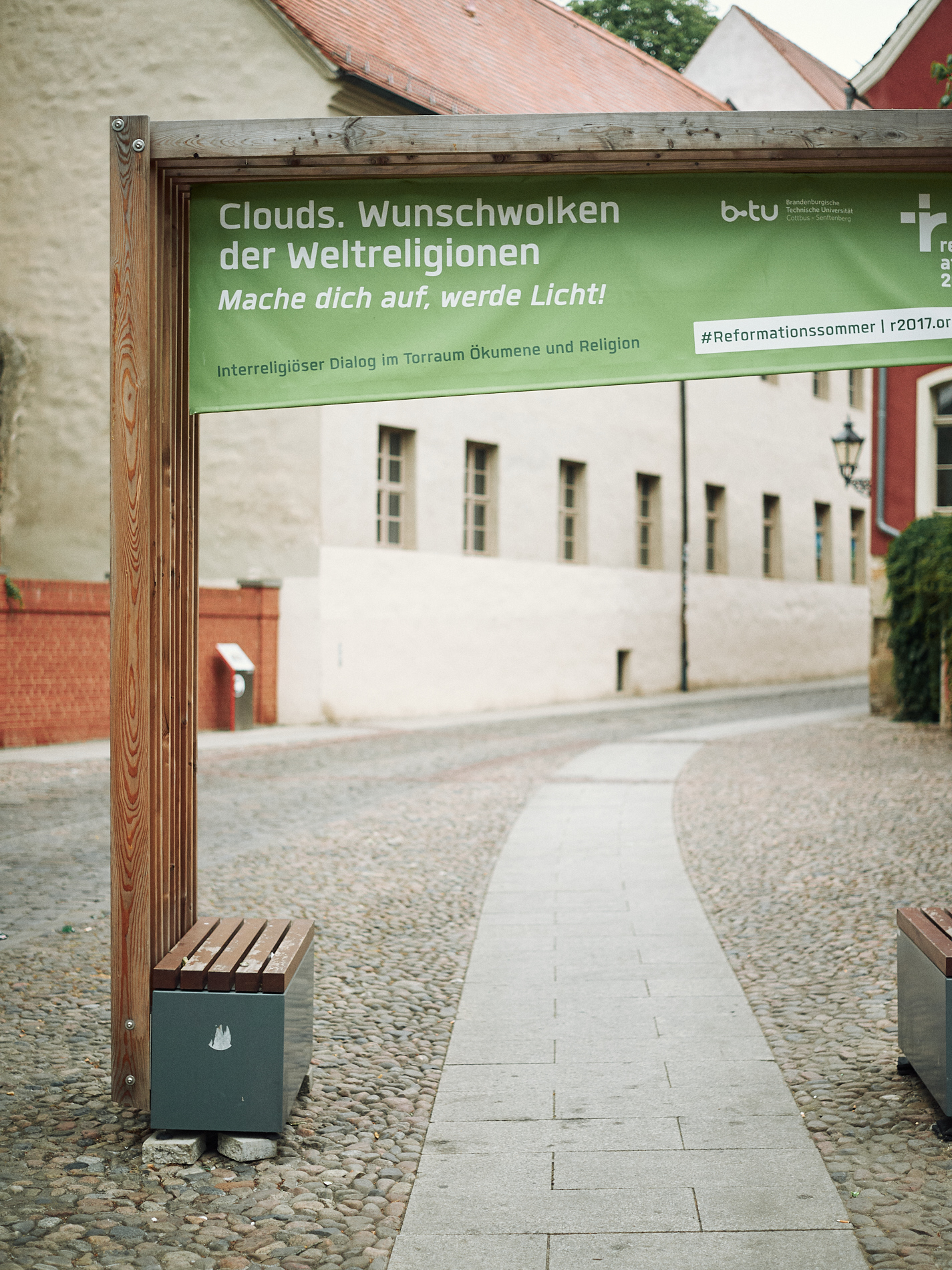 Das Land Sachsen-Anhalt hatte sich darauf entsprechend seit Jahren vorbereitet und das war auch gut so. Viele Stellen in Wittenberg sind ausgebaut worden – das Besucherzentrum an der Schlosskirche, dem Ort des damaligen Geschehens, bekam ein „Makeover“ und wurde irgendwie auf die erwarteten Massen vorbereitet – bis auf die fehlenden öffentlichen Toiletten und das ist nicht nur ein fauxpas ;). Insgesamt wurde Wittenberg chic gemacht. Ein wenig erinnert es mich allerdings an die Vorbereitungen auf russische Staatsbesuche in der DDR – die Straßen, durch die gefahren wurde, bekamen einen neuen Anstrich… im Erdgeschoss. Mehr hat man aus den Staatskarossen eh nicht gesehen. Ein bisschen mehr ist schon passiert und die Ausgangslage war auch besser und so hat Wittenberg sich insgesamt zu einer schönen Stadt entwickelt. Nicht umsonst ist auch ein Predigerseminar hier angesiedelt – am Kernort der evangelischen Kirche auch richtig platziert.