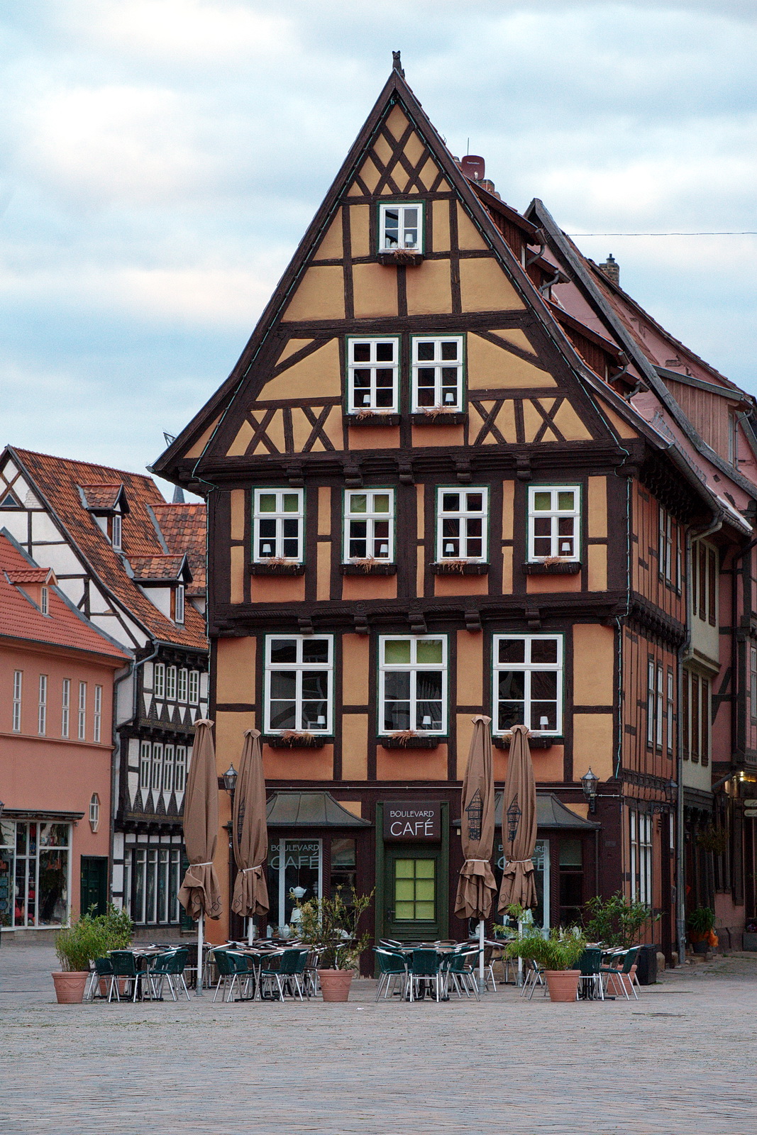 Das kleine Café befindet sich im Keller eines historischen Fachwerkhauses in Quedlinburg, einer Welterbestadt am Harz. Würde man jetzt zur Geschichte Quedlinburgs ausholen, käme ein recht langer Blogpost heraus. Das will ich jetzt gar nicht anstreben, nur so viel: Die Stadt ist, und das sage ich nicht nur als stolzer Einwohner, einer der Orte ersten Ranges, wenn es um die Geschichte Deutschlands im Mittelalter geht. Kaiser und Könige, mächte Frauen und starke Schätze, Erinnerung und Tradition, Kultur und eine beeindruckende Fachwerkkulisse bieten den Grund für ein echtes UNESCO-Weltkulturerbe. Nicht schlecht, möchte man meinen. Besser noch, man überzeugt sich vor Ort. Aber genug der Werbung! 😉