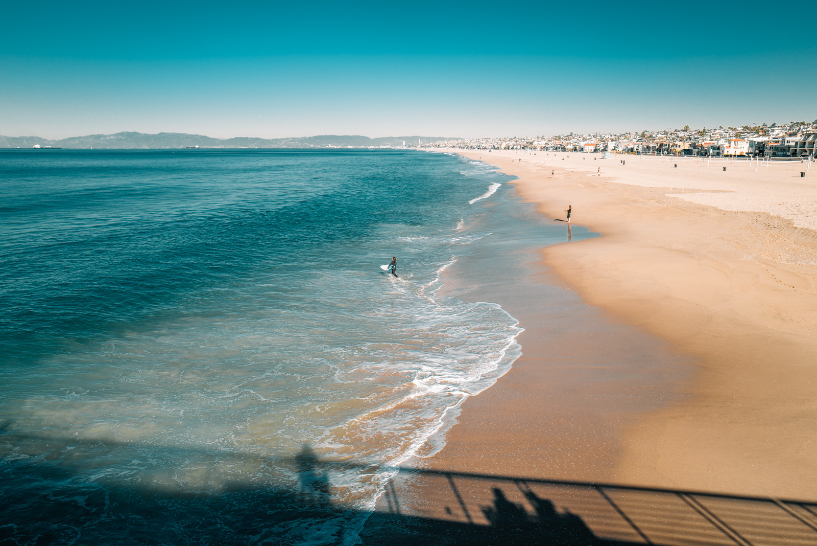 Ich nutzte die Gelegenheit, mit einem lieben Freund und Kollegen ein bisschen die Strände von L.A. zu besuchen. Da kann man eigentlich nicht viel falsch machen. Wir waren beide eher nicht so auf Action aus, wobei mein Freund sich erst einmal einen 10km-Jogginglauf am Strand von Hermosa Beach gab. Ich für meinen Teil tigerte da rum und versuchte die zwei Surfer fotografisch einzufangen. Da ich aber neben meiner OsmoPocket nur eine Kamera mit 28mm dabei hatte, gestaltete sich das mitunter etwas schwierig. Naja, manchmal muss man sich auch einfach mal damit abfinden ein Foto nicht zu machen.