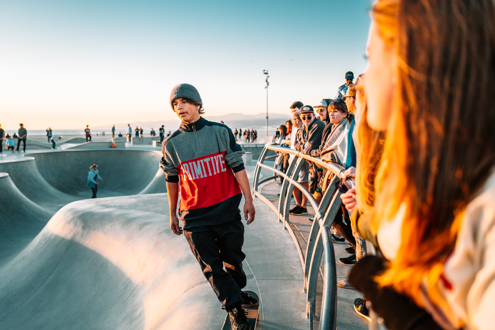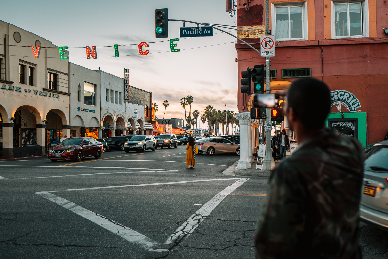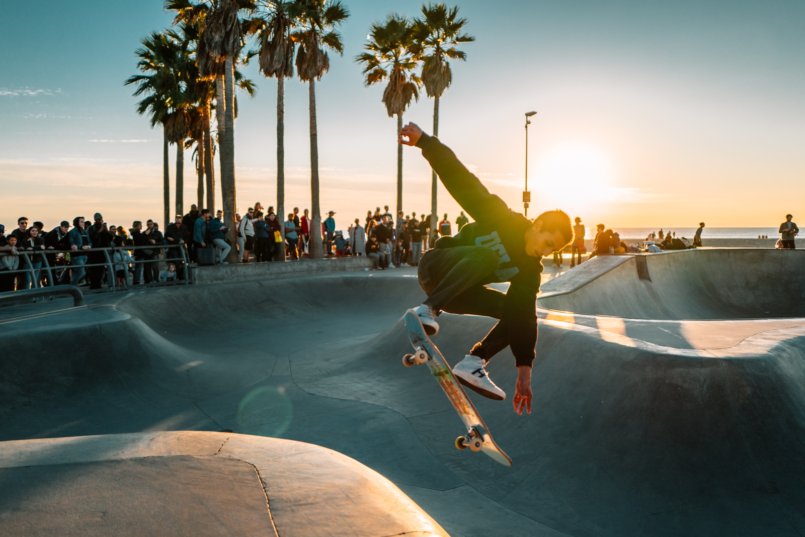 Und irgendwie endet ein Tag in Los Angeles dann wohl doch damit, dass man letztlich am Venice Beach landet. Die Luft ist grasgeschwängert und man hat beim Atmen das Gefühl, als würde man an einer Tüte ziehen. Die Leute sind dementsprechend entspannt am Venice Beach und es ist voll von Touristen, Strassenmusikern, Strassenkünstlern, Verkäufern, Pennern….das gesamte Leben, alle Gesellschaftsschichten scheinen am Venice Beach zusammen zu kommen. Das Licht dort zum Sonnenuntergang ist einfach herrlich, im Grunde ist es die Sonne Kaliforniens im allgemeinen, die einem ein wohliges Gefühl und vor allem tolles Licht spendet.
