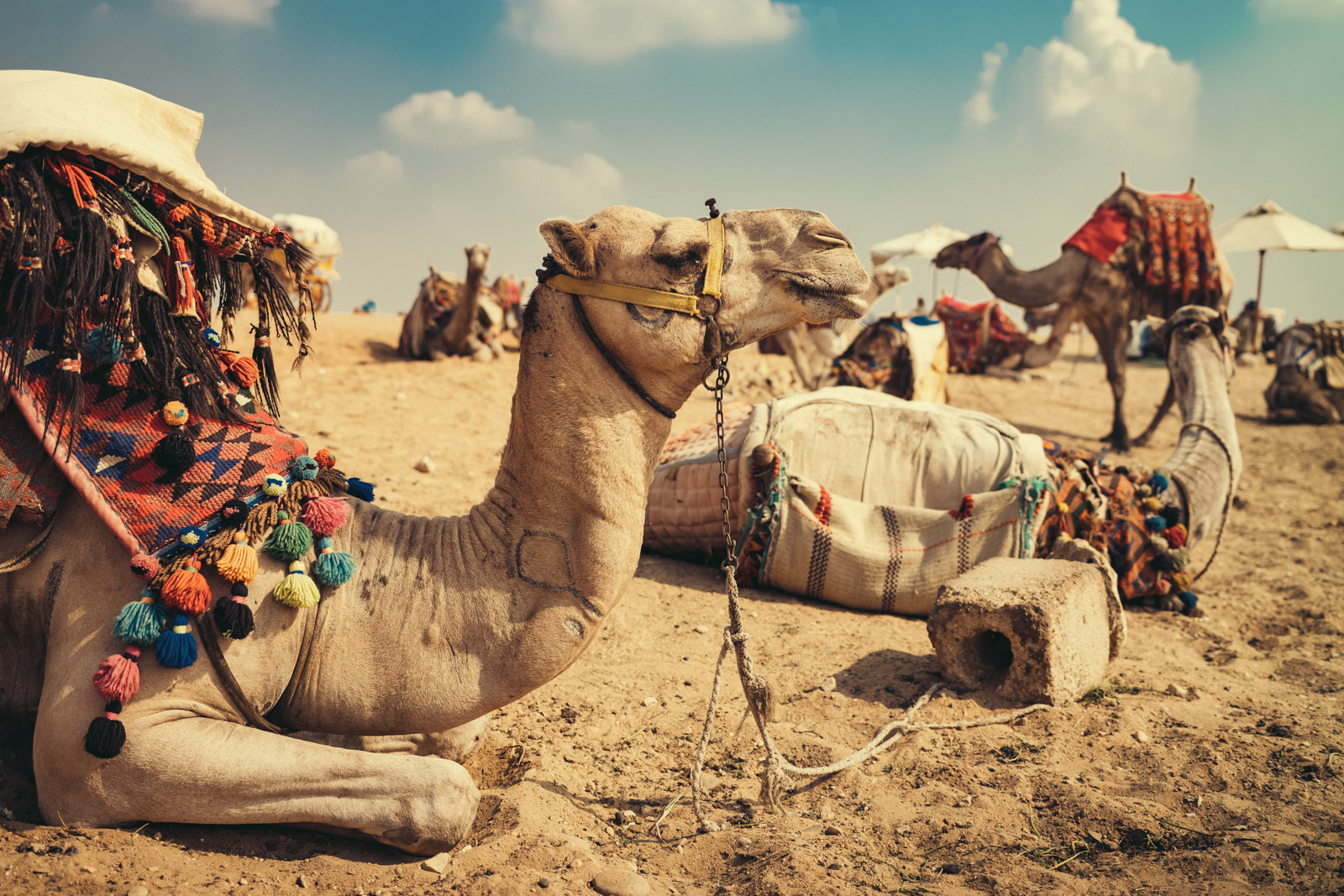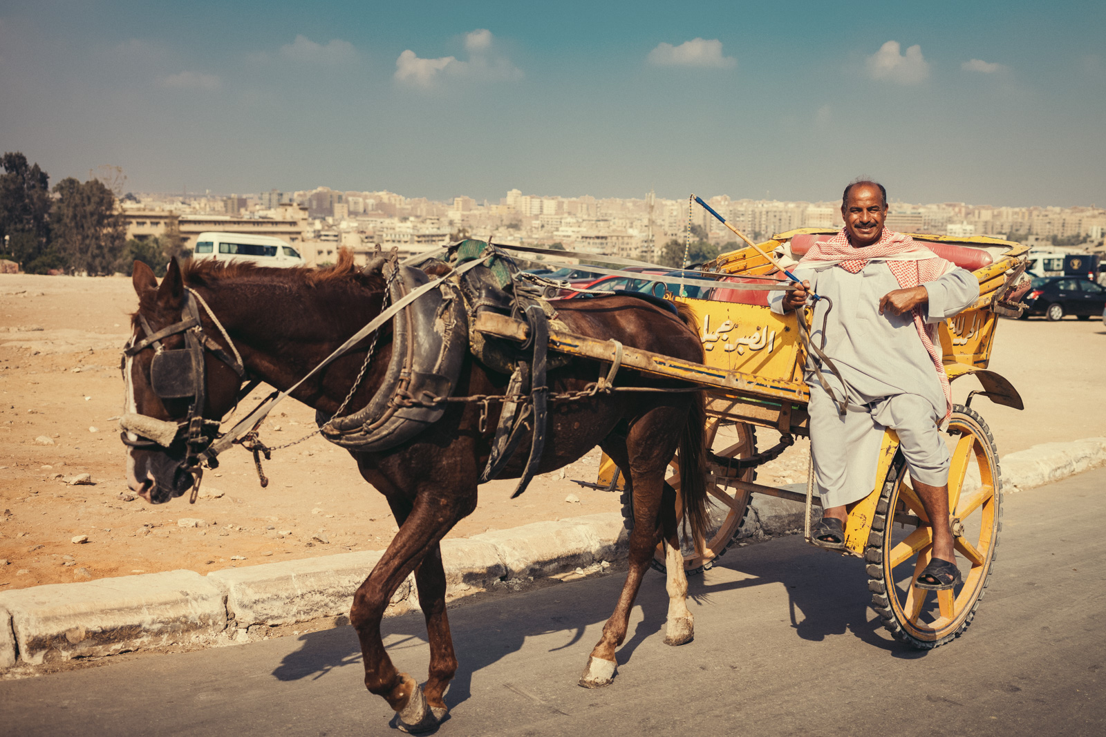 Irgendwann wollte ein Teil von uns auch Kamelreiten. Ich weiß gar nicht, warum ich auf so ein Teil gestiegen bin, denn ich wollte das gar nicht. Ich glaube, ich habe mich selten so unwohl gefühlt wie auf dem Rücken dieses Kamels. Das war so wackelig da oben, dass ich schnell merkte, dass mir dieser Kontrollverlust so gar nicht gefiel. Ich suchte mir eine schnelle Ausrede und auch hier war mir die Fotografie ein guter Freund. Natürlich wollten die Kollegen alle Fotos von sich, aber auf diesem wackligen Rücken war für mich natürlich nicht daran zu denken, Fotos zu machen. Schließlich brauchte ich beide Hände, um mich am Sattel festzukrallen. Ich glaube, ich sah echt jämmerlich aus, ich fühlte mich zumindest so. Das Ende vom Lied war, dass ich ganz gechillt in einer kleinen Kutsche zum Aussichtspunkt gebracht wurde. Geht doch!