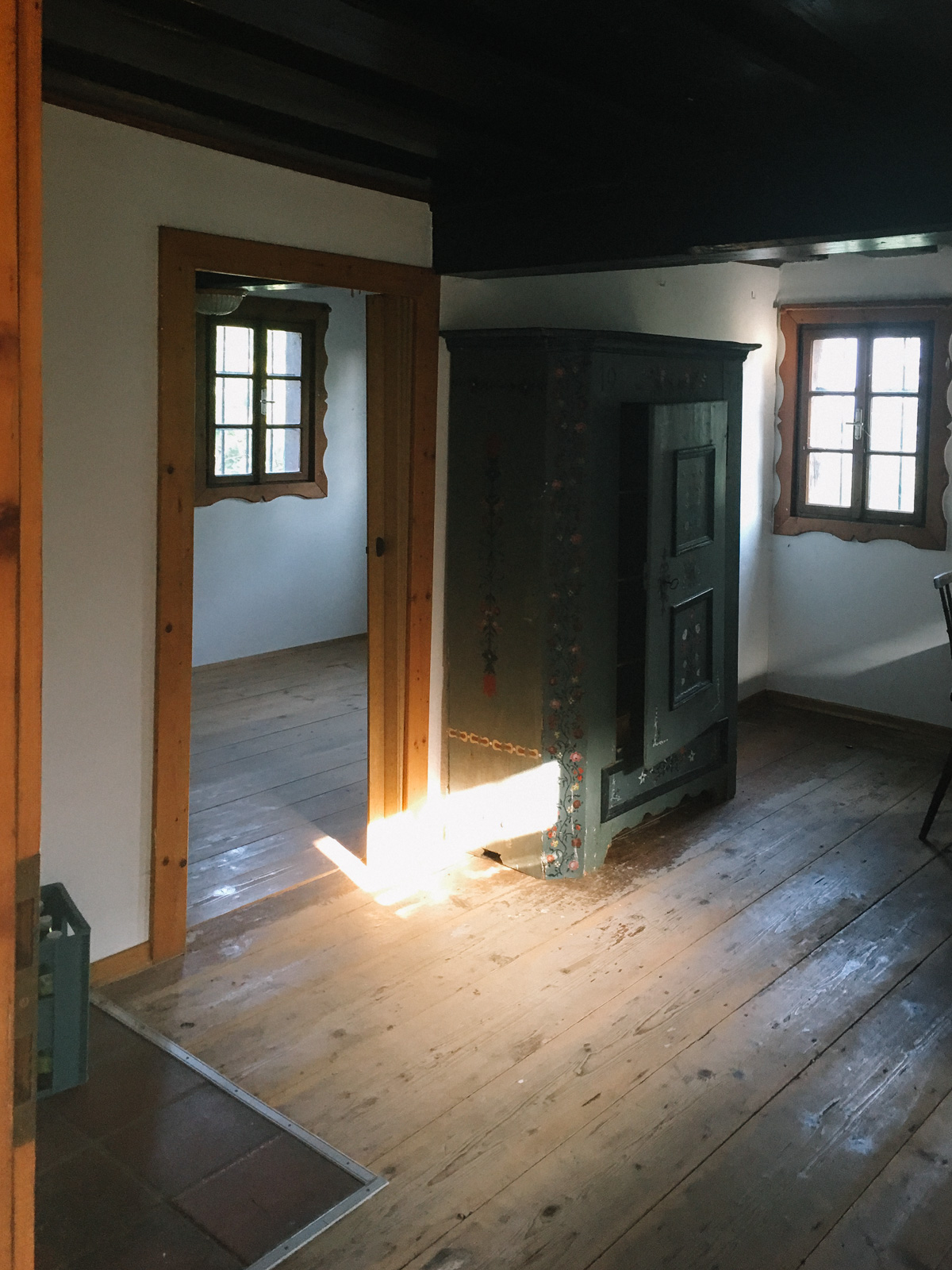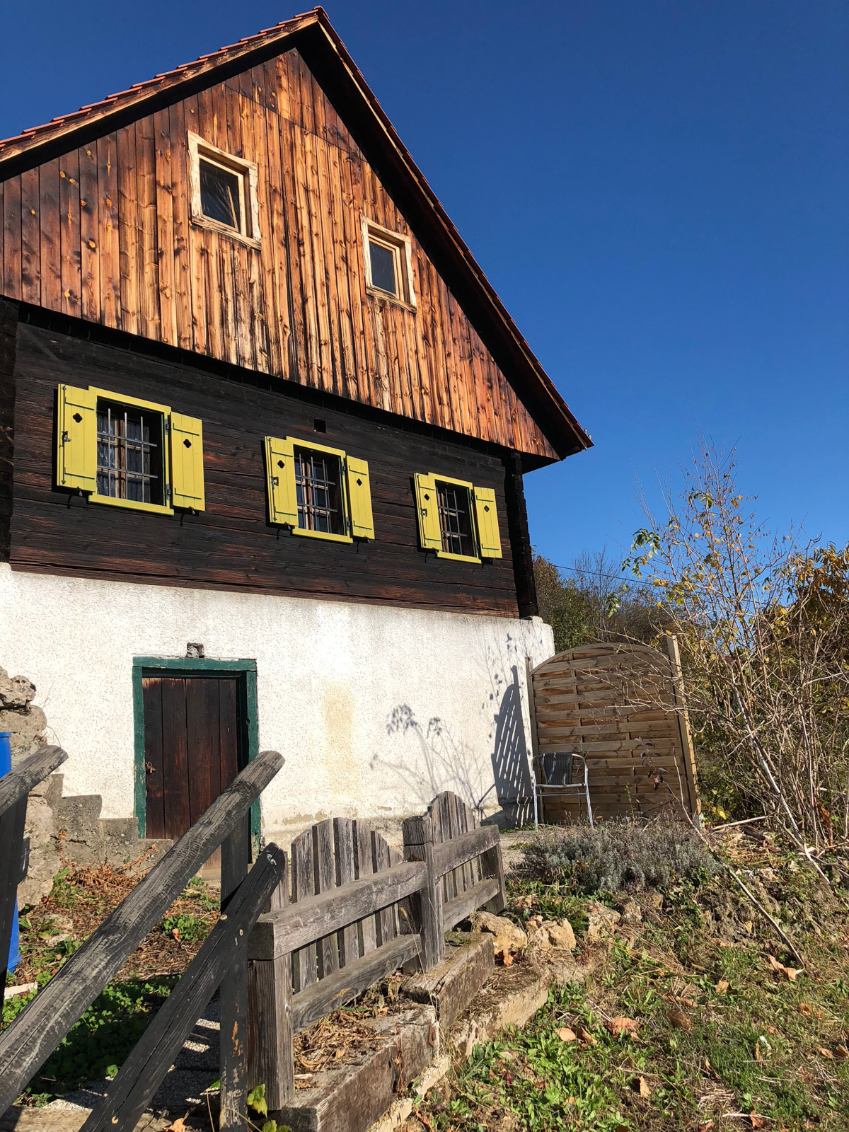 Heute, 6 Monate später sitze ich in einer urgemütlichen Stube auf dem Sofa, der Kamin lodert, das Sonnenlicht lässt den schönen Holzboden und den alten Bauerntisch in neuer Pracht erstrahlen und ich schreibe diesen ersten Post. Schaue ich nach links aus dem Fenster sehe ich den Teil einer wundervollen Landschaft, die nicht ohne Grund die steirische Toskana genannt wird.